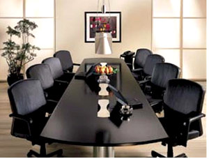 videoconference table with the new wedge shape to facilitate your teleconferencing
